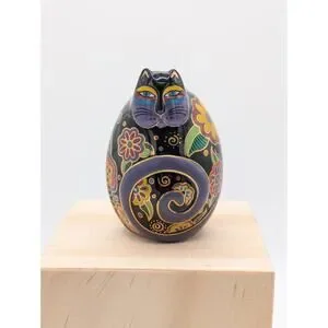 Laurel Burch "Flowering Feline" Cat Figurine Ceramic A9978 Handmade, 1996