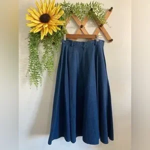 Dark Blue Denim A-Line Maxi Skirt - Classic Flare