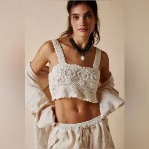 Features: Soft cotton crochet, open-knit fabrication, unlined, square-neckline, wide shoulder straps