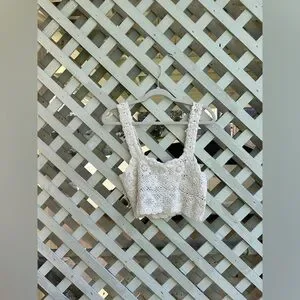 So chic in a crochet fabrication, this feminine top features a cropped silhouette and sleeveless design with open-knit detailing and wide shoulder straps.