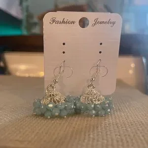 Elegant silver and blue beaded jhumka earrings perfect for any occasion.