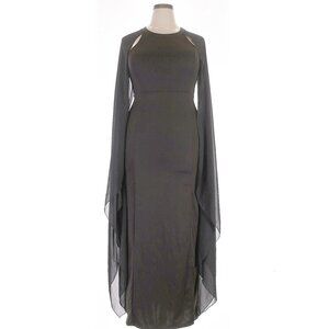 Black Cape Sleeve Column Gown XXL Formal Maxi Dress Sheer Chiffon Elegant