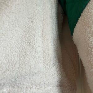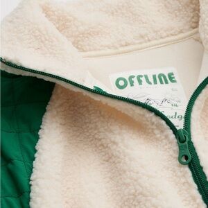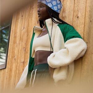 aerie Cream Sherpa Jacket with Green Quilted Shoulders