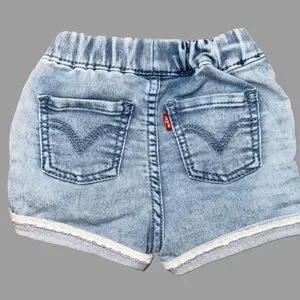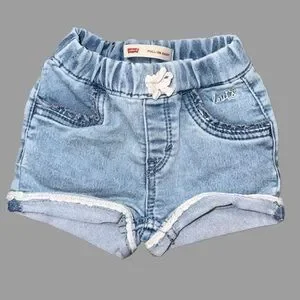 Charming Levi's denim shorts in sky blue. Features elastic waistband and lace detailing.