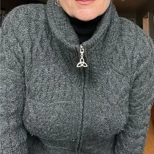 Irish Aran Crafts charcoal grey sweater coat made from 100% Merino Wool (first two pics are from website and only used to show style)