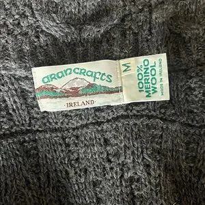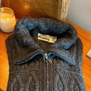 Aran Crafts Irish Merino Wool Cable Knit Coat - size Medium, Charcoal Grey.