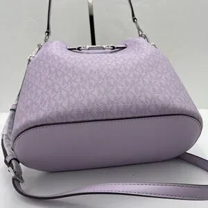 MICHAEL KORS Carson Md Sign Logo Convertible Bucket Cross Shoulder Lt Quartz NWT