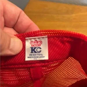 Vintage-style trucker hat with bold front logo. White foam front panel with red printed Rainier Amboy Territorial Days 1995 text. Red mesh back and red curved brim. Classic casual accessory snap back. Ready to wear.