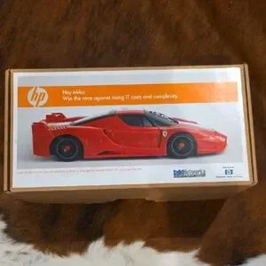 HP branded Remote Controlled red Ferrari ( no remote, just car ) . this is new in the box with paperwork, You had to call somebody to get the remote control and listen to a spiel which we never did. this is definitely a rare find.