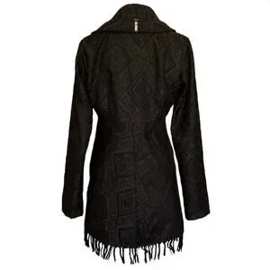 Everyday Coat for that Casual Beachy Look! Billabong so you know it's good! It's black with detail fringe and a cool boho pattern throughout. Size Small.