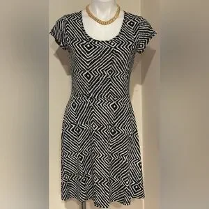 MICHAEL KORS Comfortable Black & White Geometric Short Sleeves Mini Dress Sz S