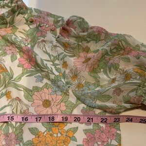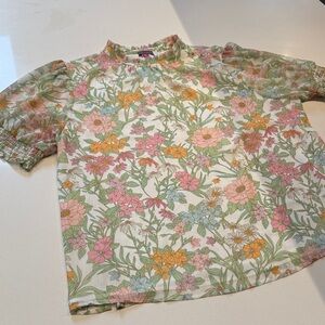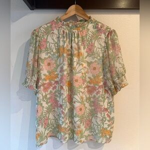 Vince Camuto Multicolor Pastel Floral Smocked Neck Sleeve Blouse, Size XL