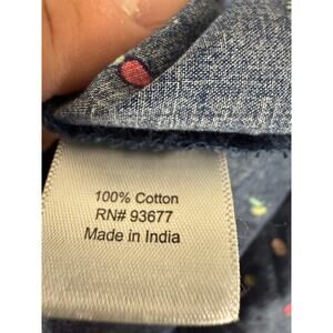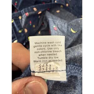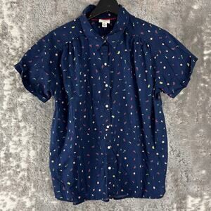 St Johns Bay Petite Size PL Fruit Print Casual Button Top Navy Short Sleeve