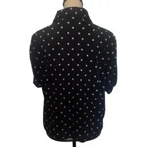 Adrianna Papell Black Polka Dot Puff Sleeve Button Up Women's Top Large