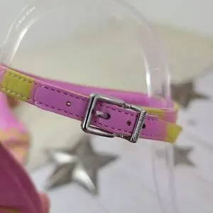 Gianni Bini, the Maileigh Leather Square Toe Ankle Strap Block Heel Dress Sandals in a retro 90s style pink and lime green print feature:
