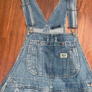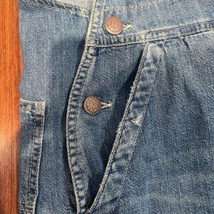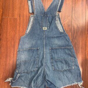 R13 Brindley Wash Distressed Denim Overall Shorts Size M | Frayed Hem