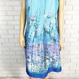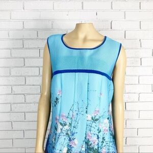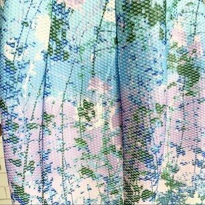 Sleeveless, vine printed, fit and flare dress with piping. Length 38”. Armpit to armpit measurement lying flat 19”.