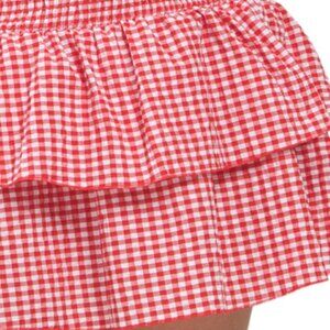 bow accents, fabric provides stretch, gingham pattern, includes matching scrunchie