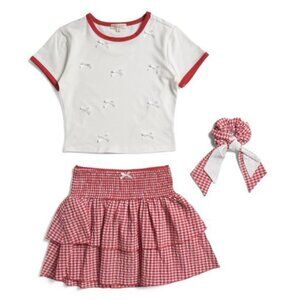 BETTER TOGETHER Bow Top With Gingham Skirt Set And Matching Hair Scrunchie