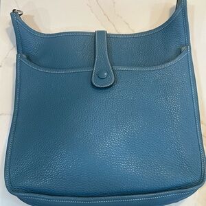 Hermes Evelyne GM III in Blue Jean Clemence with palladium hardware