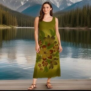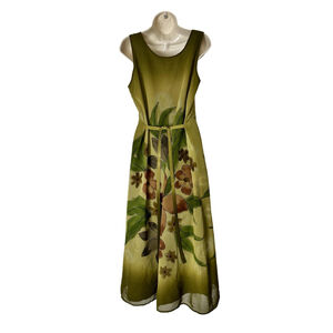 Vintage Adrianna Papell Art To Wear Floral Maxi Dress Medium Green Sheer India
