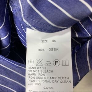 TomorrowLand Blouse Sz 38 Blue White Lines Long Sleeve Classic Made in Japan