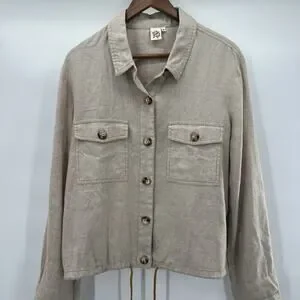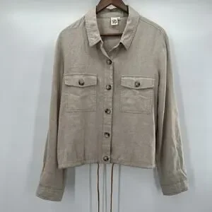 Ivy Jane Jacket Womens Small Beige Linen blend Boxy Utility Safari Light Weight