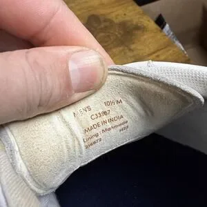 Keywords: Cole Haan Grand, Mens sneakers, white leather shoes, C33987, size 10.5, casual dress shoes, perforated leather, cushioned sneakers, navy blue trim, walking shoes, business casual