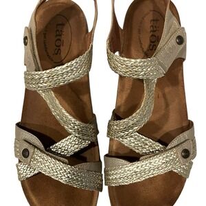 new TAOS Trulie 41 / 10 - 10.5 Woven Leather Ankle Strap Comfort Sandals Stone