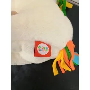 This plush unicorn toy, crafted by Gigglescape, features a colorful rainbow mane and vibrant yellow hooves. Made with soft materials, it's ideal for cuddling or imaginative play. Its whimsical design and bright hues bring joy, making it a delightful companion for children or a playful decorative piece for unicorn lovers.