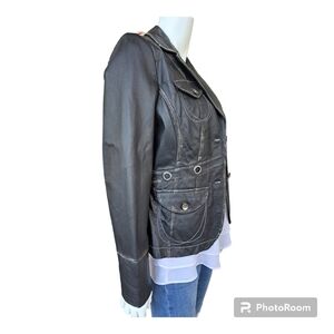 Fabric life faded leather women's jacket coat black leather women's Size M