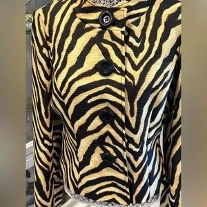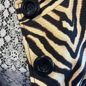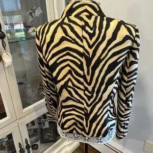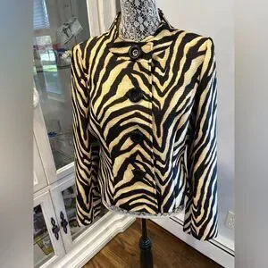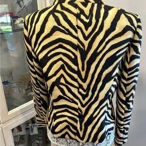 Beautiful Bold Zebra pattern blazer. Features button closure. Adds flair to any look.