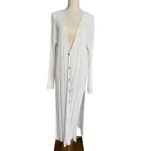 Free People Skinny Mini Midi White Ribbed Long Duster Size Medium