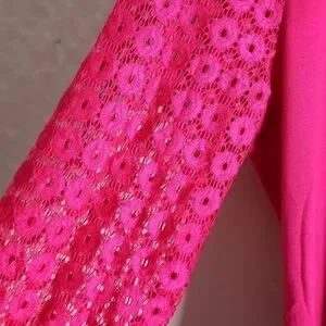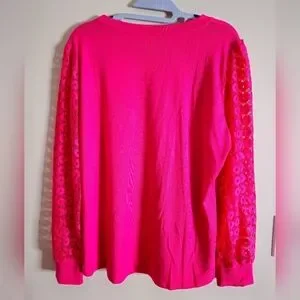 Women's Hot Pink Eyelet Lace Puffy Long Sleeve Top Size L - new without tags, never been worn.