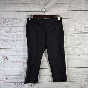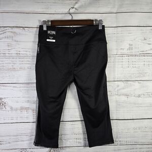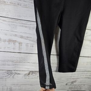 NWT Victoria Sport Black Crop Leggings Mesh & Glitter Stripe Athletic Capri