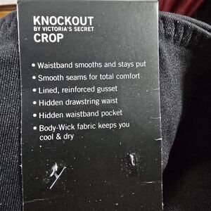 NWT Victoria Sport by Victoria’s Secret black cropped athletic leggings, size medium. These sporty leggings feature a flattering high-rise waistband with breathable mesh panels and a sparkly silver stripe detail down the sides for a stylish athletic look. Stretch performance fabric makes them perfect for workouts, yoga, running, or athleisure wear.
