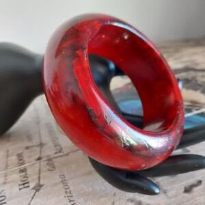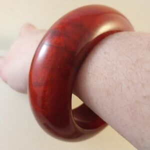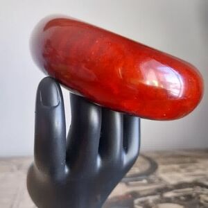Vintage Bakelite Red Resin Dome Bangle Bracelet