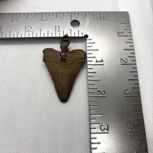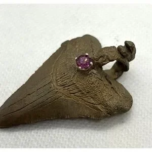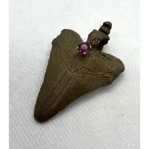 Vintage Bronze Coated Megalodon ? Tooth Pendant Genuine Tourmaline Accent Shark