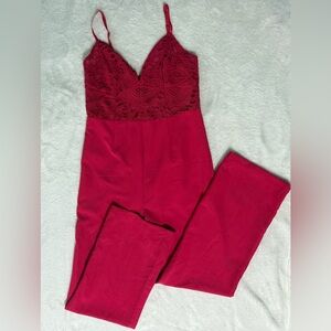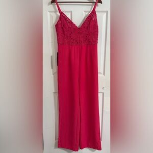 Bebe Vibrant Pink Lace Bodice Jumpsuit