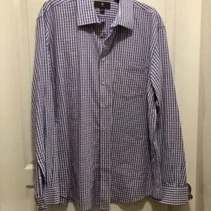 Men’s XL Toscano lavender white check button front shirt