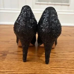 WHBM Sequined Black Stiletto Platform Pumps