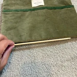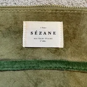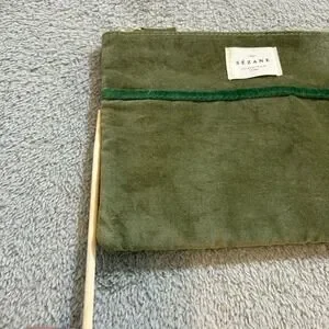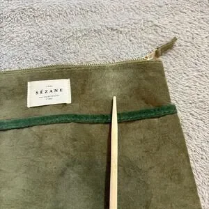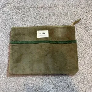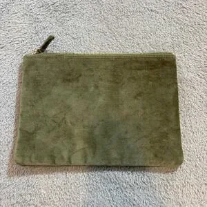 Sezane Olive Green Cotton Velvet Zippered Pouch Makeup Bag Clutch Travel