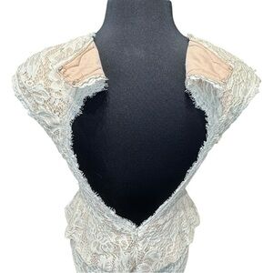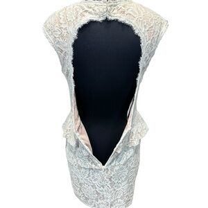 • Style: Peplum lace sheath dress with illusion front and open back