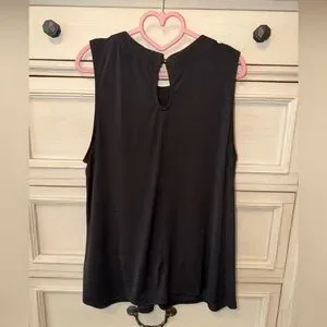 Classic sleeveless tank in black with subtle front pleats for a polished look. Lightweight, drapey fabric creates an easy, flattering silhouette. Clean round neckline and simple design make it versatile for work or weekend styling.