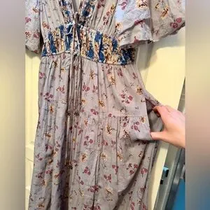 Free People Floral Dress in Gray and Blue
