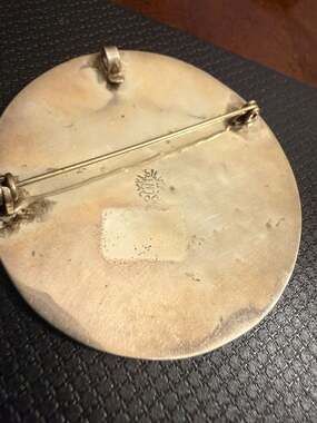 Vintage Taxco Mexico Sterling Silver Abalone Inlay Round Brooch Pendant