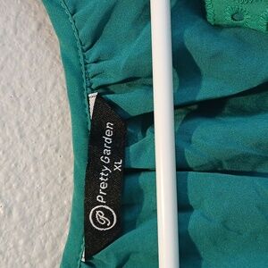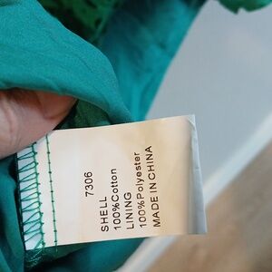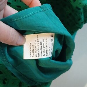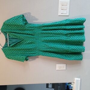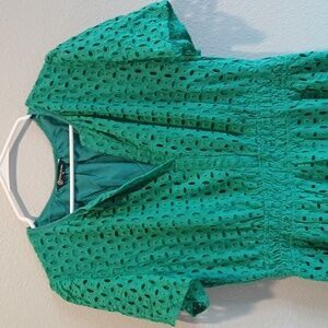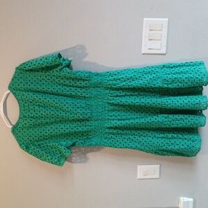 Chic green eyelet dress with ruffled sleeves. Perfect for summer outings.