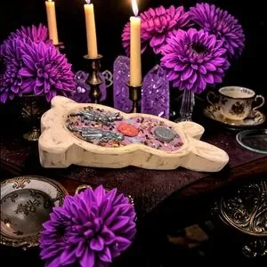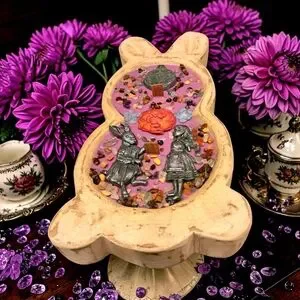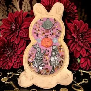 Complimented with dried flowers, chakra stones, and Alice and White Rabbit.