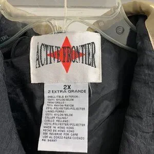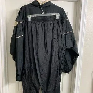 Very nice women's two-piece athletic set that is new without tags. This set is the jacket and pants. Black and cream color. Jacket has full front zipper closure. Pants are pull-on and have an elastic waist. Size 2X. Smoke free/pet free home.
