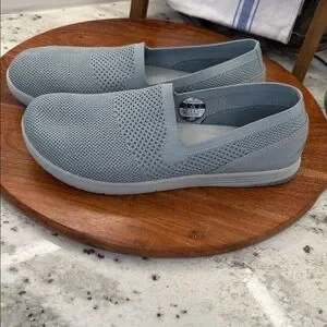 Experience comfort and style with these light blue mesh slip-on shoes. Perfect for casual outings, these shoes offer breathability and ease of wear.